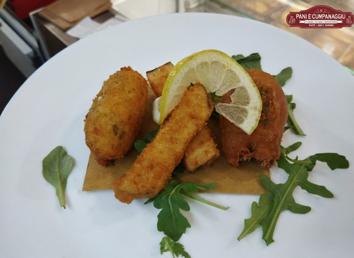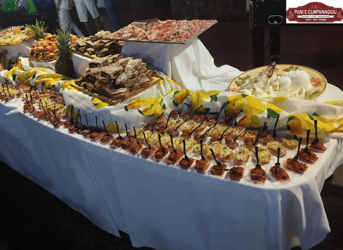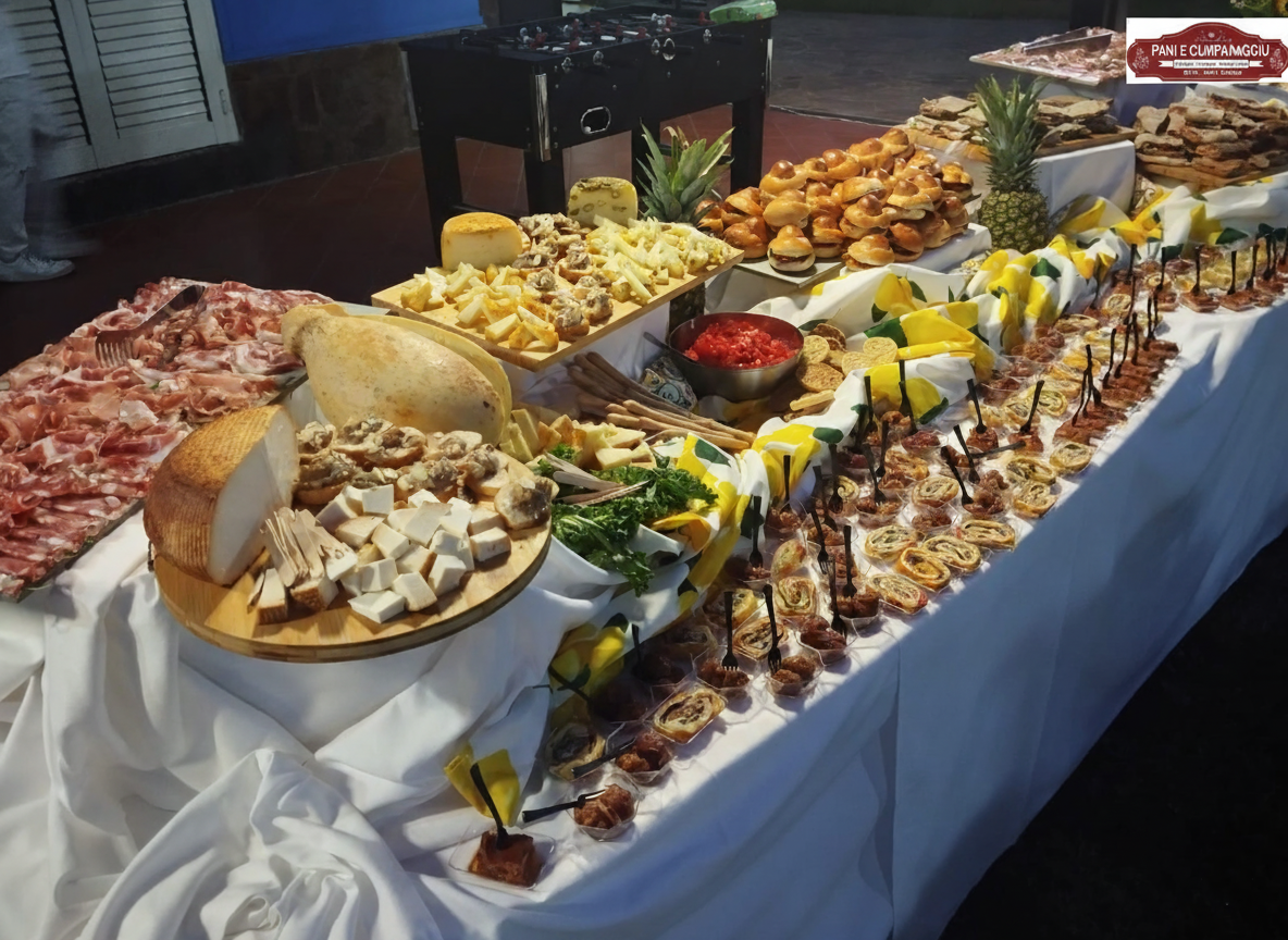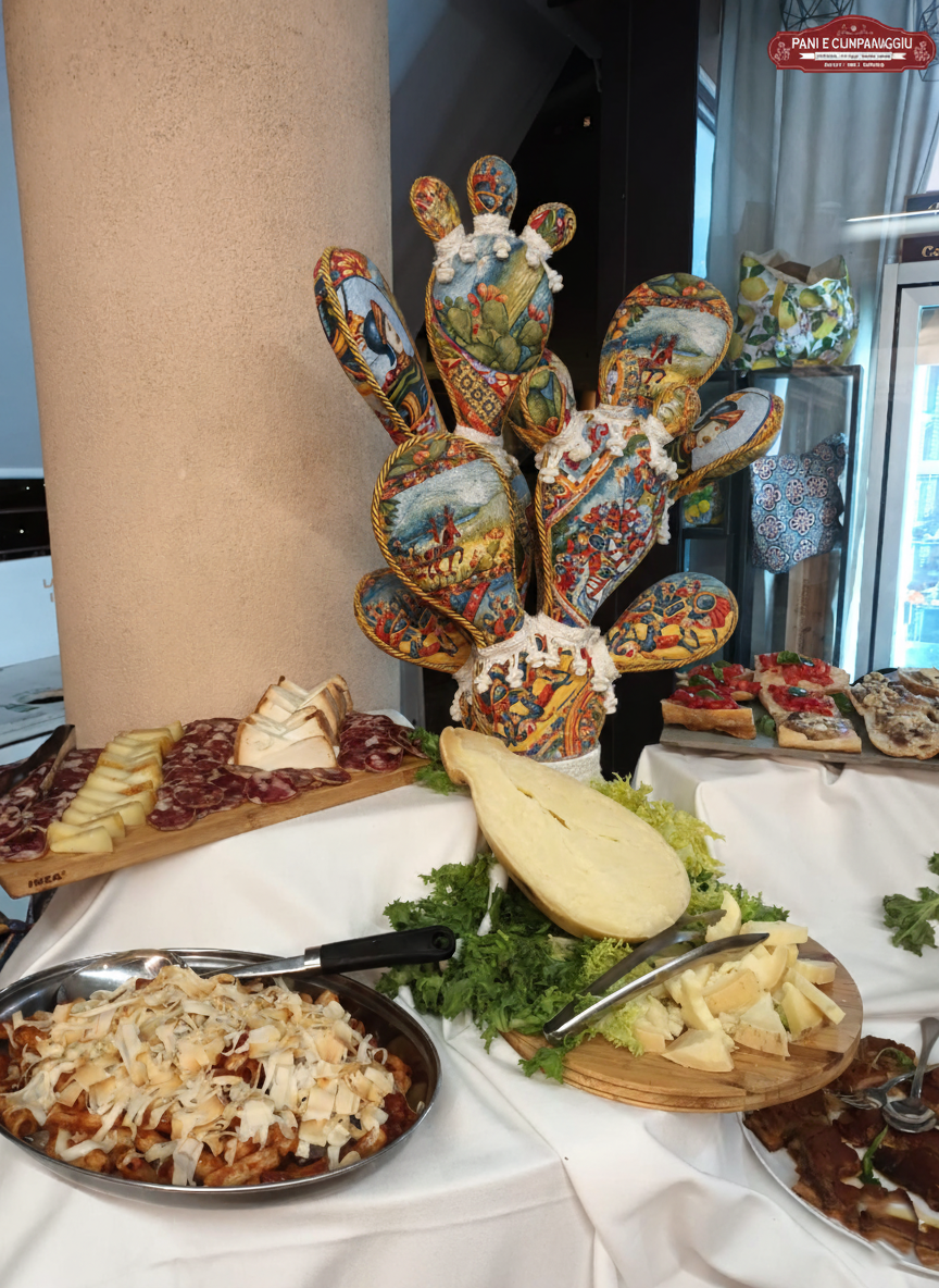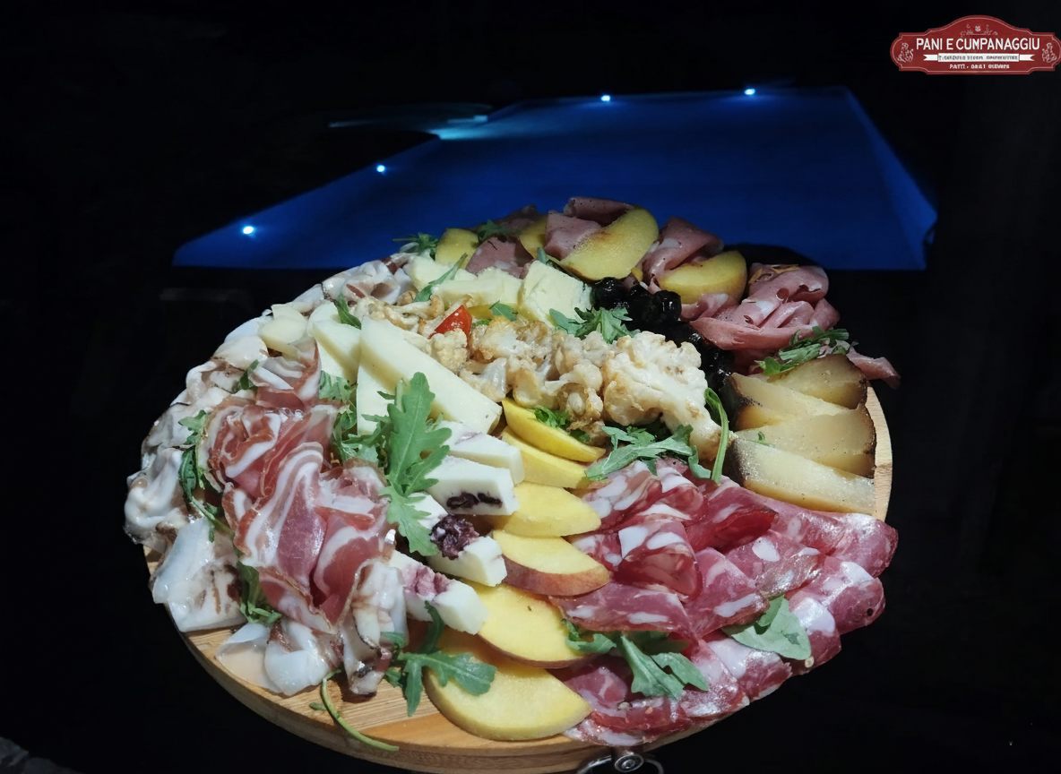 Uno dei punti di forza di Pani e Cumpanaggiu è senza dubbio l'aperitivo con i taglieri misti di salumi e formaggi nostrani ed attentamente selezionati con una qualità estrema dei prodotti che sono tutti a KM0 , siciliani e dei Nebrodi . Disponibile anche a pranzo o in serata come apericena (consultate i nostri