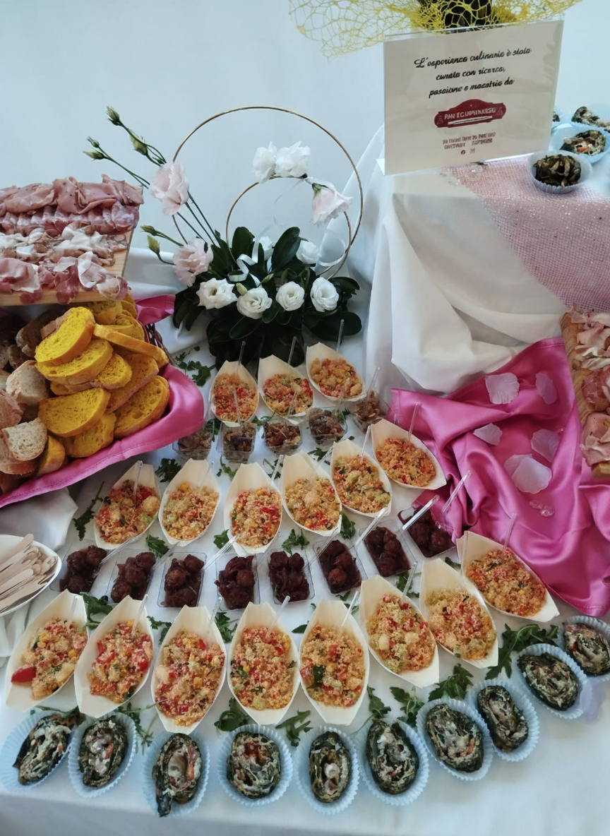 Offriamo un servizio di catering esterno per piccoli eventi, con un'ampia selezione di finger food, taglieri di salumi e formaggi ed un assortimento variegato di panini e pane cunzato. Su prenotazione, effettuiamo spedizioni in tutta Italia, permettendovi di gustare le nostre specialità ovunque vi troviate. Inoltre, proponiamo prodotti specifici per le festività natalizie e pasquali, per rendere ogni occasione davvero speciale con le nostre prelibatezze artigianali. Per maggiori informazioni e per ordinazioni, contattateci telefonicamente oppure utilizzate il form di contatto dedicato cliccando sul pulsante sottostante.